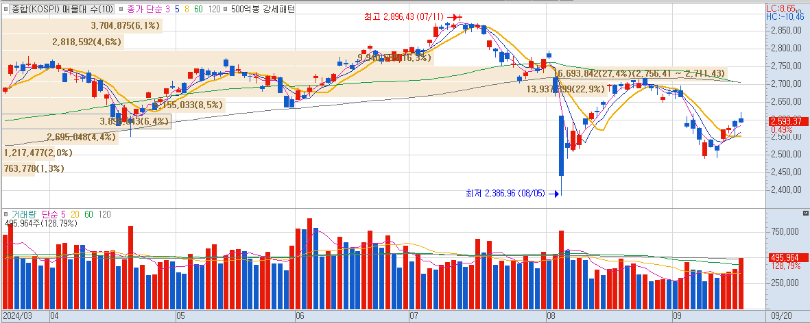 바이오 관련주는 미국 금리 인하 기대감과 미국 생물 보안법 통과가 주요 호재로 작용하며 강세를 보였습니다. - 코스피와 코스닥 모두 상승: