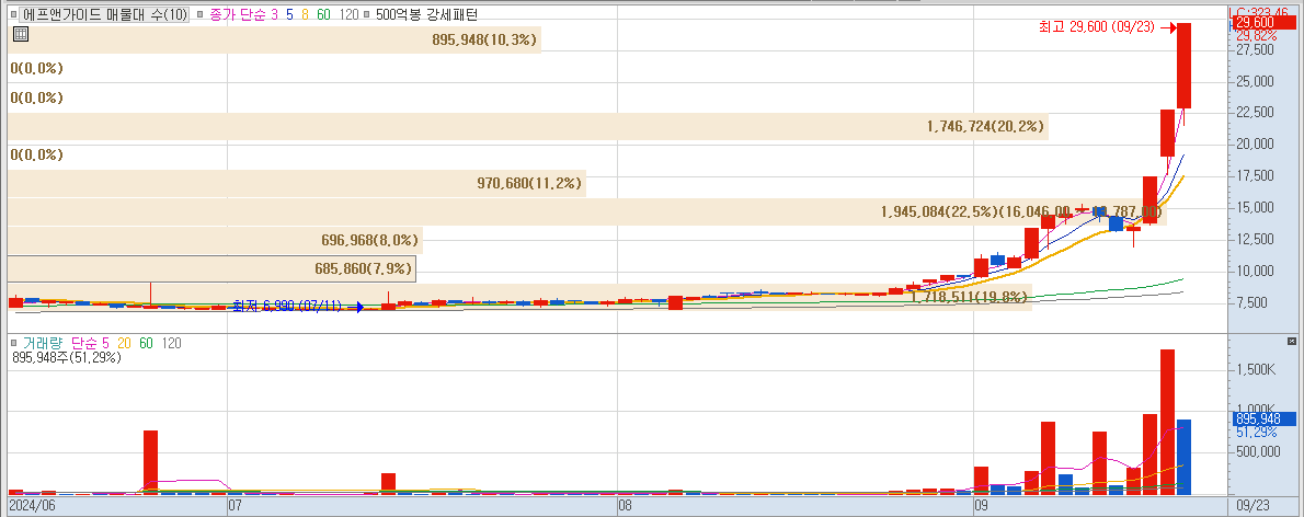 - 에프앤가이드: 경영권 분쟁 이슈로 상한가.