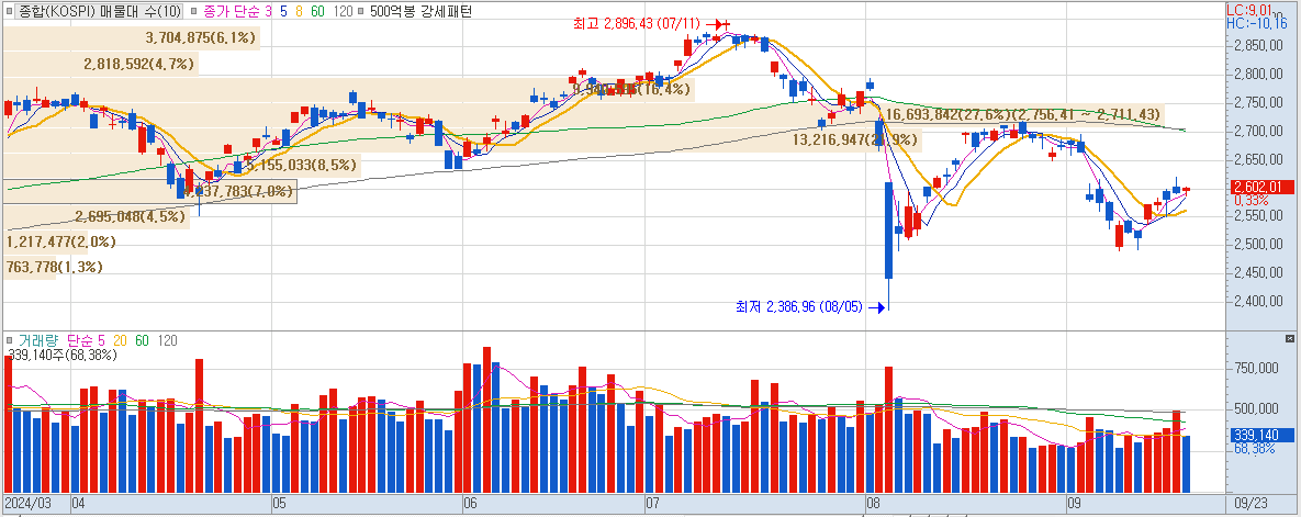 - 지수는 상승세를 유지하고 있지만, 차트상으로는 아직 명확한 상승 추세가 나타나지 않고 있습니다.