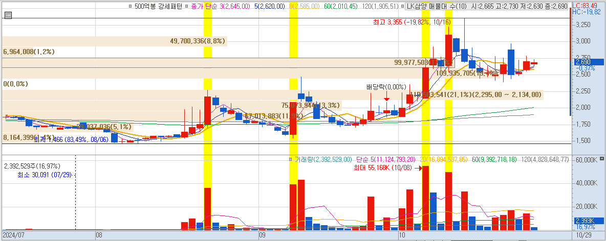 - 이동평균선 지표값을 화면에 표시하면, 5일, 10일 이동평균선을 보고 금액대를 확인하기 좋습니다. 초보자들에게는 이 부분이 꽤 유용할 거예요.