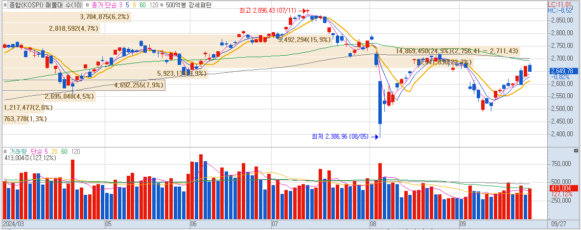 - 외국인 매수와 개인 스마트 매매: 외국인은 코스피 지수의 하락장에서 매수를 늘리고 있으며, 개인들은 음봉에 매수, 양봉에 매도하는 트렌드를 보임. 주도주가 바뀔 때 대형주, IT주, 반도체 섹터에 주목할 만함.