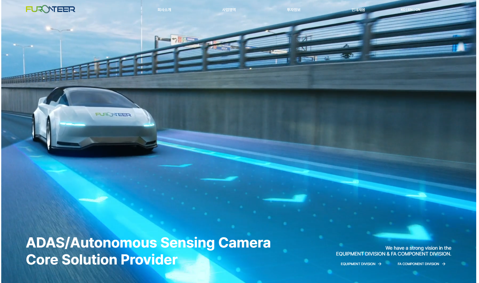 - 장비사업부: 자동차 전장용 카메라의 조립 및 검사 장비를 개발·판매합니다. 삼성전기와 세코닉스 등 주요 고객사의 전장 카메라 제조라인에 다양한 조립·검사 공정 장비를 납품하고 있습니다.