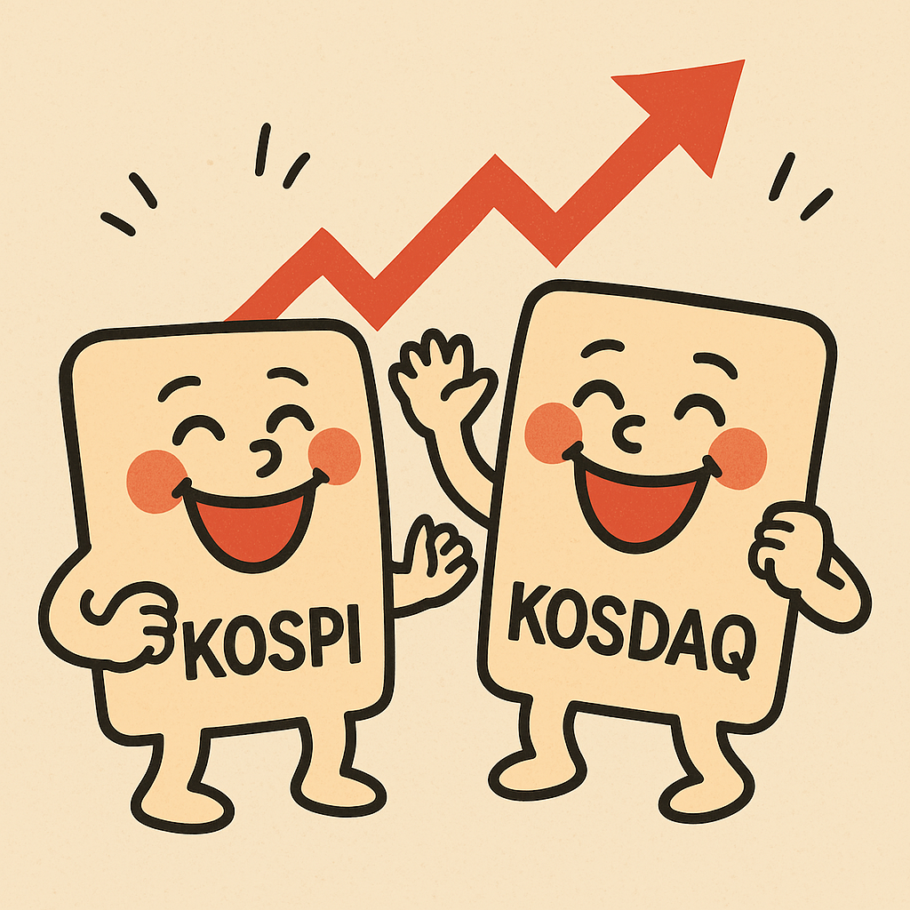 오늘은 우리나라 주식시장, 코스피와 코스닥이 기분 좋~게 웃은 날입니다.