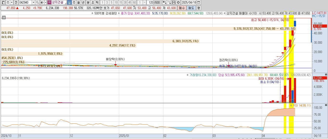 - 의미: 하루 거래대금이 각각 150억 원, 500억 원을 넘는 지점에서 생성되는 ‘거래대금 봉’.