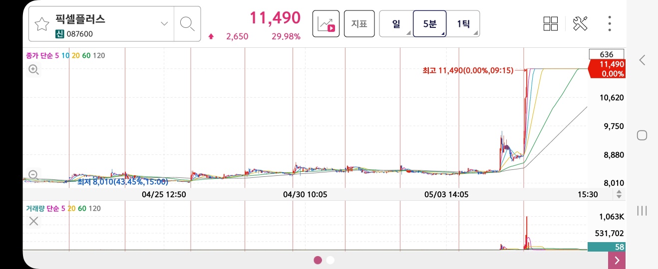 픽셀플러스 (+29.98%)(2172K)