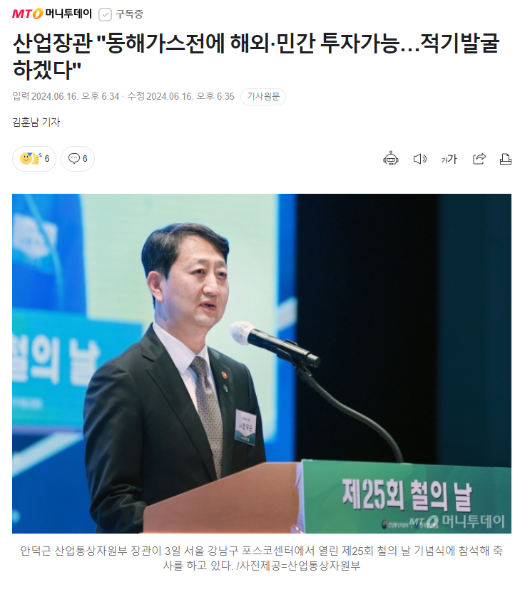 안덕근 산업통상자원부 장관이 동해 심해 유전·가스전 '대왕고래' 프로젝트에 대해 "해외 투자 유치를 통해 합리적 방식으로 적기 발굴하겠다"고 말했다. 안덕근 장관은 16일 오후 연합뉴스TV에